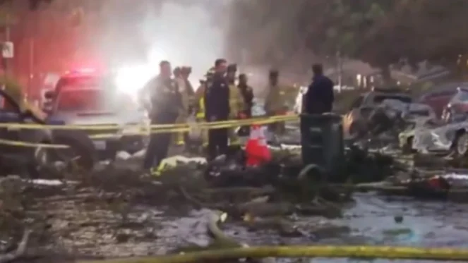 Paniku mbërtheu një zonë banimi të San Diegos nga rrëzimi i një aeroplani të vogël në orët e para të së enjtes, duke rezultuar në shpërthimin e zjarreve në rreth 15 shtëpi dhe disa automjete.