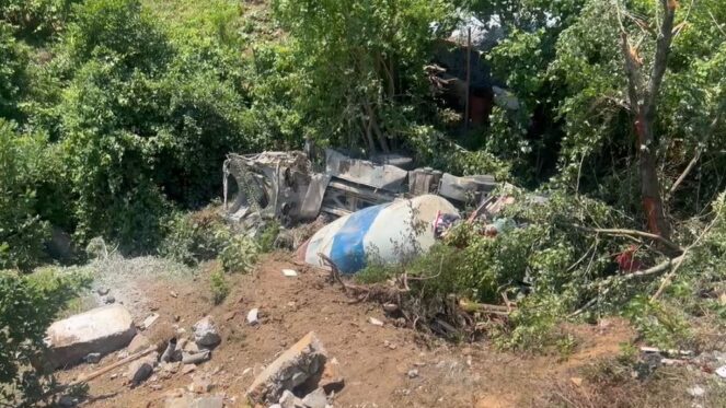 Aksidenti për pak mund të ishte fatal për drejtuesin e automjetit tip betoniere, për shkak të terrenit në të cilin ka ndodhur. Për fat të mirë, automjeti është ndaluar në përrua dhe nuk ka shkuar më poshtë.