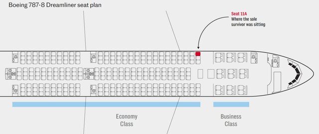 Shkalla më e ulët e vdekshmërisë, rreth 28%, u gjet në vendet e mesme në pjesën e pasme të kabinës, ndërsa vendet pranë korridorit në mes të aeroplanit kishin shkallën më të lartë prej 44%.