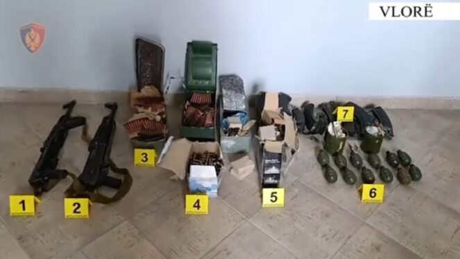 Shërbimet e Komisariatit të Policisë Vlorë, në vijim të kontrolleve për parandalimin dhe goditjen e veprimtarive të paligjshme, bazuar në informacionet e siguruara nga inteligjenca policore, kanë ushtruar kontroll në një ndërtesë të vjetër të pabanuar, në lagjen “Hajro Çakërri”, Vlorë, në katin e dytë të së cilës gjetën të murosura disa armë dhe municion luftarak.