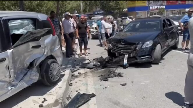 Fatmirësisht, drejtuesi i mjetit qe është goditur ka arritur të dalë në kohë nga makina e tij, duke mos u lënduar.Nga ngjarja, të dyja automjetet kanë pësuar dëme të shumta materiale.