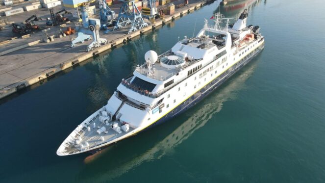 Kroçera eksploruese “National Geographic Orion” është akostuar për herë të parë në Portin e Durrësit me 108 turistë amerikanë në bord.