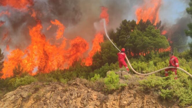 Në Borsh të Himarës, flakët që përfshinë një sipërfaqe pyjore nuk janë izoluar plotësisht, megjithëse puna vijon me mbështetjen e ushtrisë.