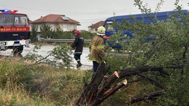Në Maliq si rezultat i erës së fortë ka pasur rënie të pemëve dhe bllokim të rrugëve.