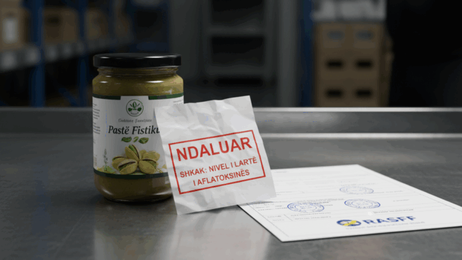 TIRANË / ZAGREB – Autoritetet kroate kanë bllokuar dhe asgjësuar në mënyrë preventive një ngarkesë me pastë fistiku të prodhuar në Shqipëri, pasi testimet laboratorike zbuluan praninë e aflatoksinës në nivele që tejkalojnë kufijtë e rreptë të sigurisë së ushqimit të Bashkimit Evropian.