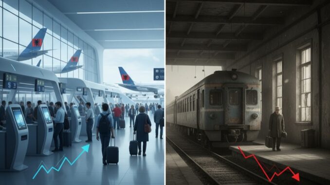 Të dhënat e reja të INSTAT për tremujorin e tretë të 2025 tregojnë një Shqipëri në lëvizje, ku transporti ajror po përjeton rritje të shpejtë, ndërsa hekurudha po përdoret nga vetëm 782 pasagjerë.