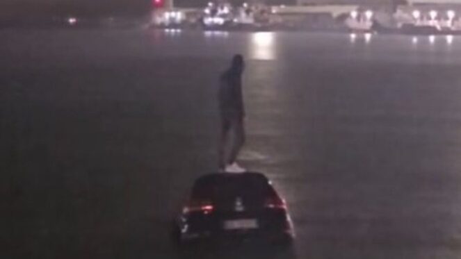 Reagimi i shpejtë i shoferit shpëtoi jetën e tij. Duke qëndruar i qetë, ai arriti të thyejë xhamin e përparmë dhe të ngjitej në çatinë e makinës, e cila filloi të mbushësh me ujë dhe gradualisht u fundos.