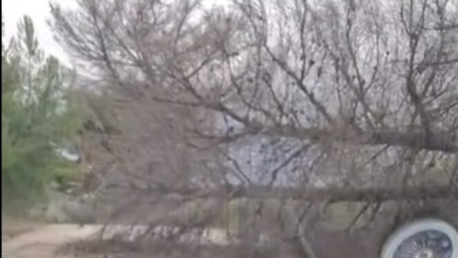 Një pishë e rrëzuar ka bllokuar qarkullimin e automjeteve në aksin rrugor Fier– Kreshpan, pranë vendit të njohur si “Qafa e Shkozës”.