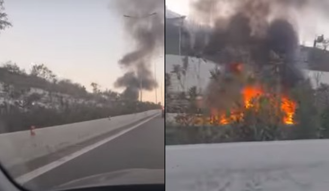 Mësohet se flakët kanë shkrumbuar thuajse totalisht mjetin, ndërsa siç mund të shikohet në foton e mësipërme tymi ka mbuluar zonën.