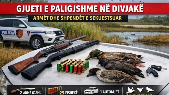 Gjueti e paligjshme në Divjakë: Dy persona procedohen, sekuestrohen armë dhe shpendë